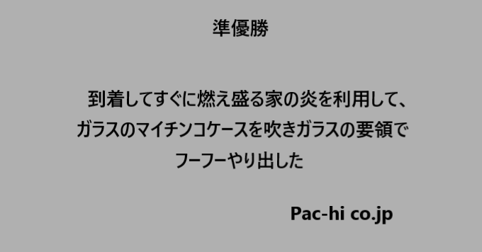 到着してすぐに燃え盛る家の炎を利用して、ガラスのマイチンコケースを吹きガラスの要領でフーフーやり出した