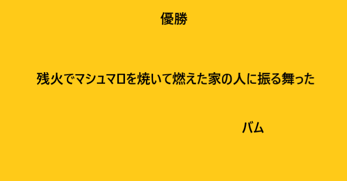 残火でマシュマロを焼いて燃えた家の人に振る舞った