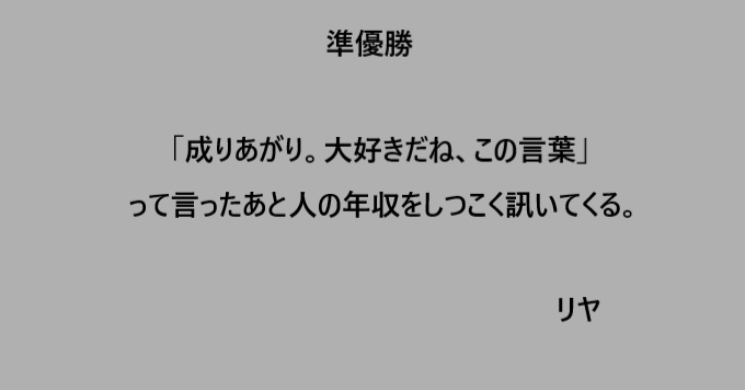 「成りあがり。大好きだね、この言葉」って言ったあと人の年収をしつこく訊いてくる。