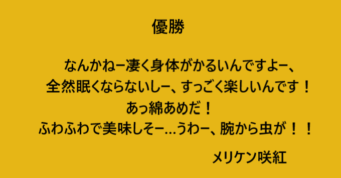 お知らせ:いいね数で入賞者の判別が困難であるため、当面の間は当サイト管理人が3つ選ばさせて頂きます。どうぞ、よろしくお願い致します。