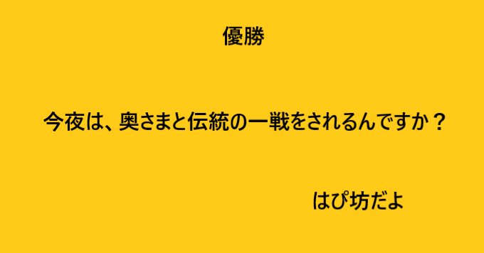 今夜は、奥さまと伝統の一戦をされるんですか?